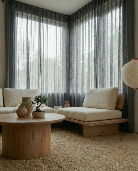 The density of our Linen Sheer Curtains is 90–100 g/m², which creates some privacy while still allowing natural light through. Linen width: 145 cm.