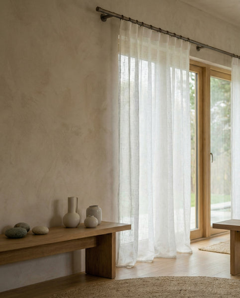 The density of our Linen Sheer Curtains is 90–100 g/m², which creates some privacy while still allowing natural light through. Linen width: 145 cm.