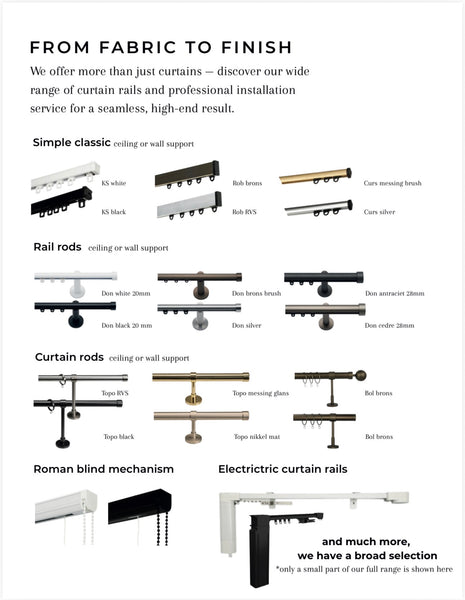 Na het bekijken van de offerte kunt u linnenstalen bestellen of (als u in Nederland woont) een afspraak met ons maken. Het eerste bezoek is gratis (na het bekijken van de offerte). Let op: We hebben meer opties dan op de website worden getoond, en de voorbeeldset bevat de meest populaire linnen artikelen.