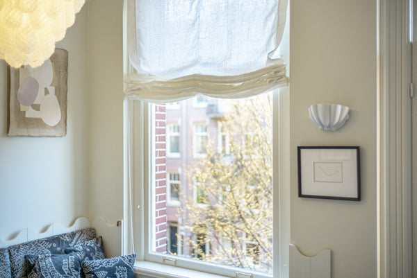 At VANLINNEN, we create custom Roman blinds from 100% natural linen, tailored to your window and finished with a clean, timeless look. Many different colours available on request.