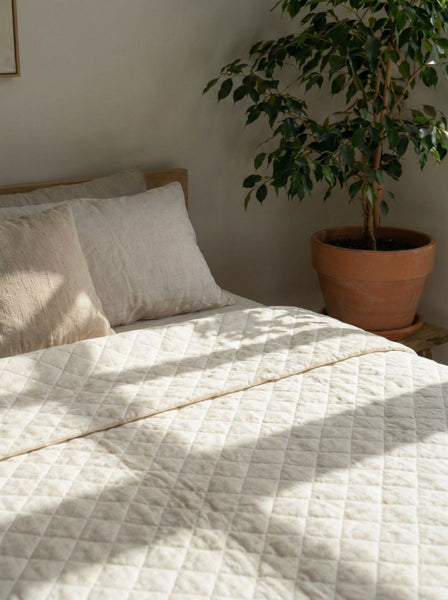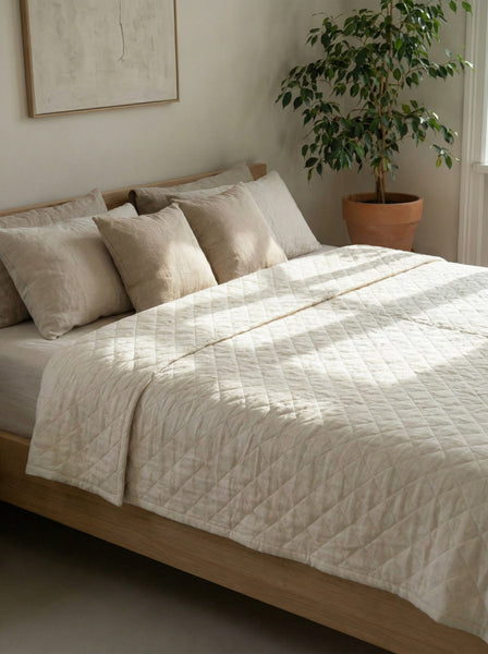 Quilted 100% linen bedspread (duvet) in Off-white colour