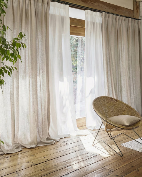 We specialise in 100% natural linen curtains and can make any size to fit your windows perfectly. Our curtains are made from 100% natural linen with a thick, high-quality weave.