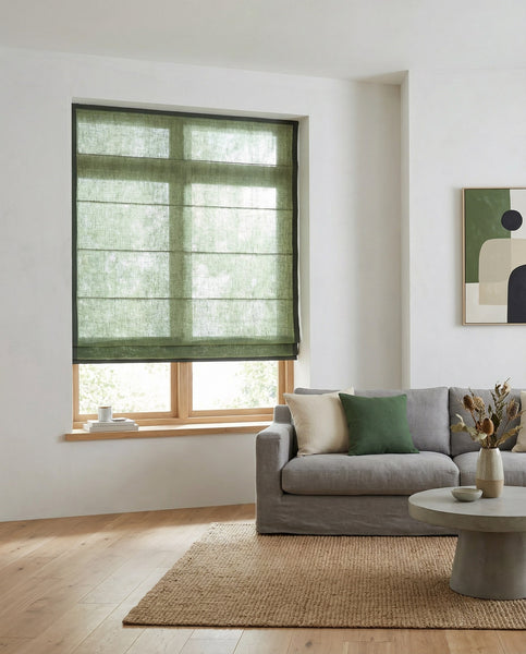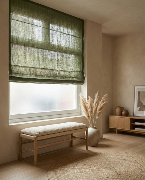 At VANLINNEN, we create custom Roman blinds from 100% natural linen, tailored to your window and finished with a clean, timeless look. Many different colours available on request.