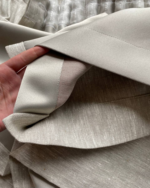 The density of Linen Blackout Curtains is 200-300 g/m², with a blackout lining made of polyester. This will provide full protection from direct sunlight.